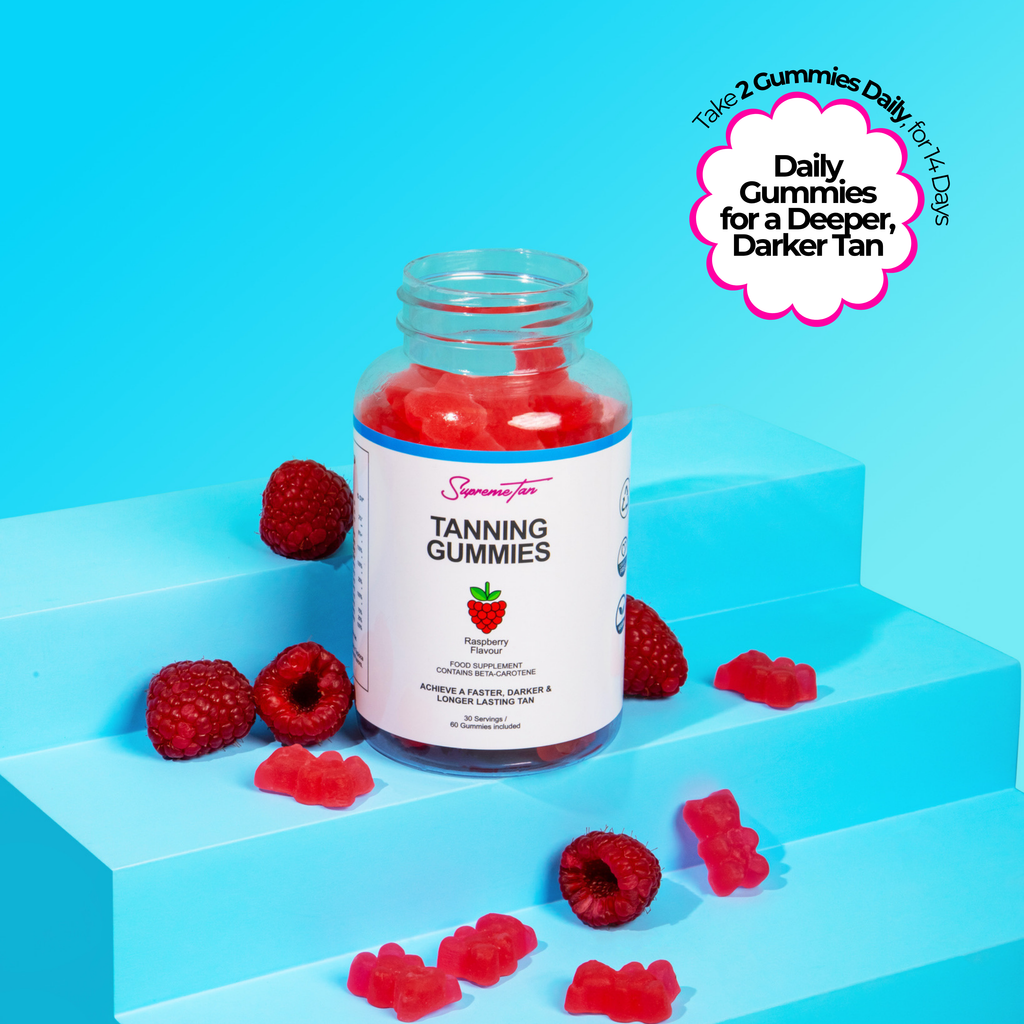 Boost your tan from the inside out with our delicious mixed fruit-flavoured tanning gummies! Packed with Vitamins, Beta-Carotene, and essential nutrients, these gummies help you develop a longer-lasting, more radiant tan.